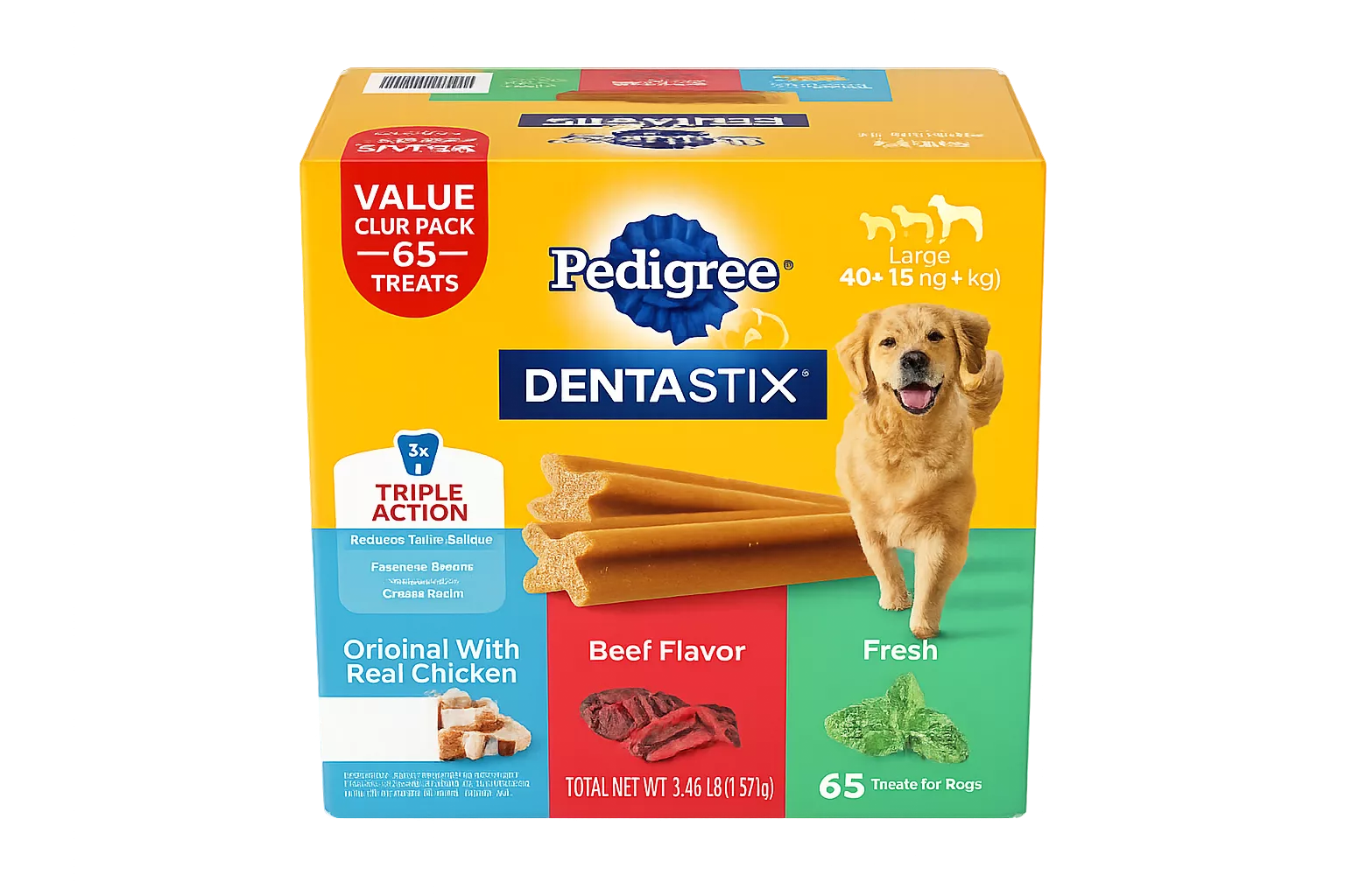 Paquete de 18 unidades (15.6 oz / 441 g) de barritas dentales para perros Dentastix, sabor beef (carne), de la marca Pedigree. Ayudan a limpiar los dientes. Conservar en lugar fresco y seco. Operador: Pedigree.