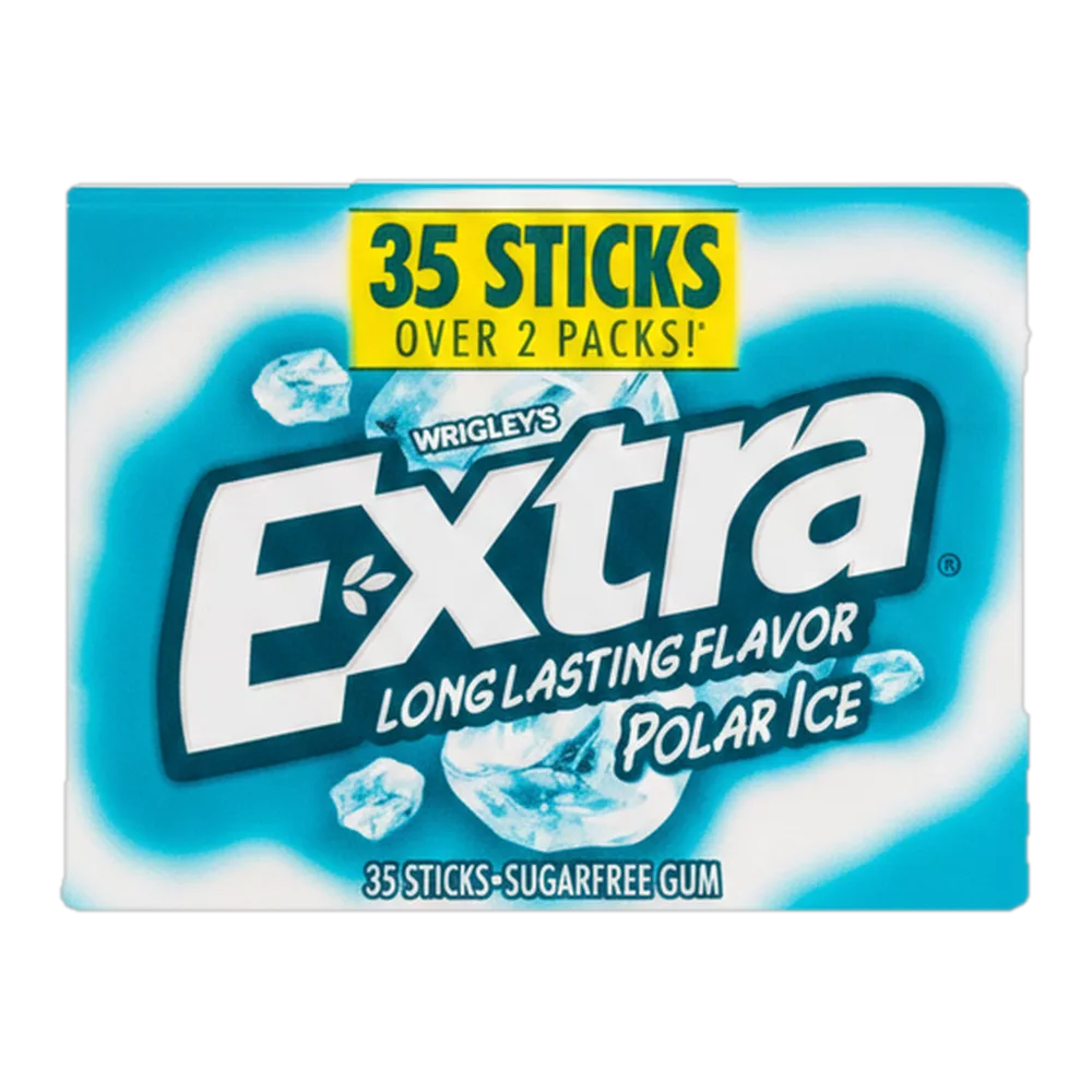 Paquete de 35 unidades de chicle sin azúcar polar ice de la marca Extra. Formato grande. Operador: Extra.