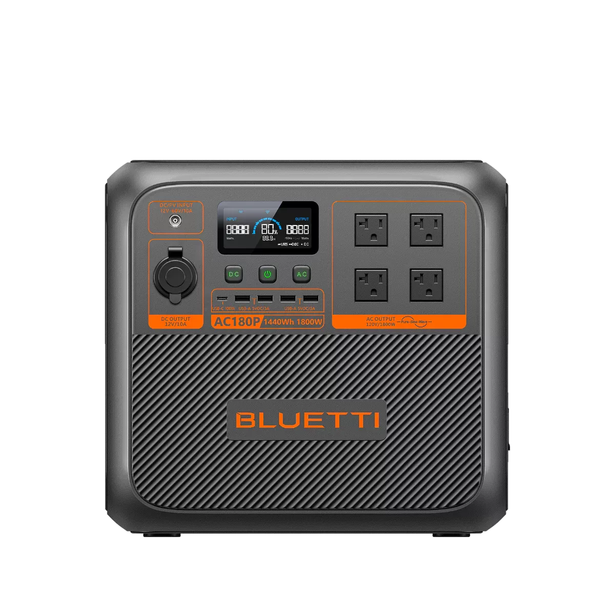 La BLUETTI AC180P es una estación de energía portátil de alto rendimiento, diseñada para ofrecer mayor capacidad, más salidas y máxima confiabilidad en cualquier situación. Con su potente batería LiFePO4 de 1400Wh, es ideal para alimentar múltiples dispositivos al mismo tiempo, tanto en el hogar como en exteriores.