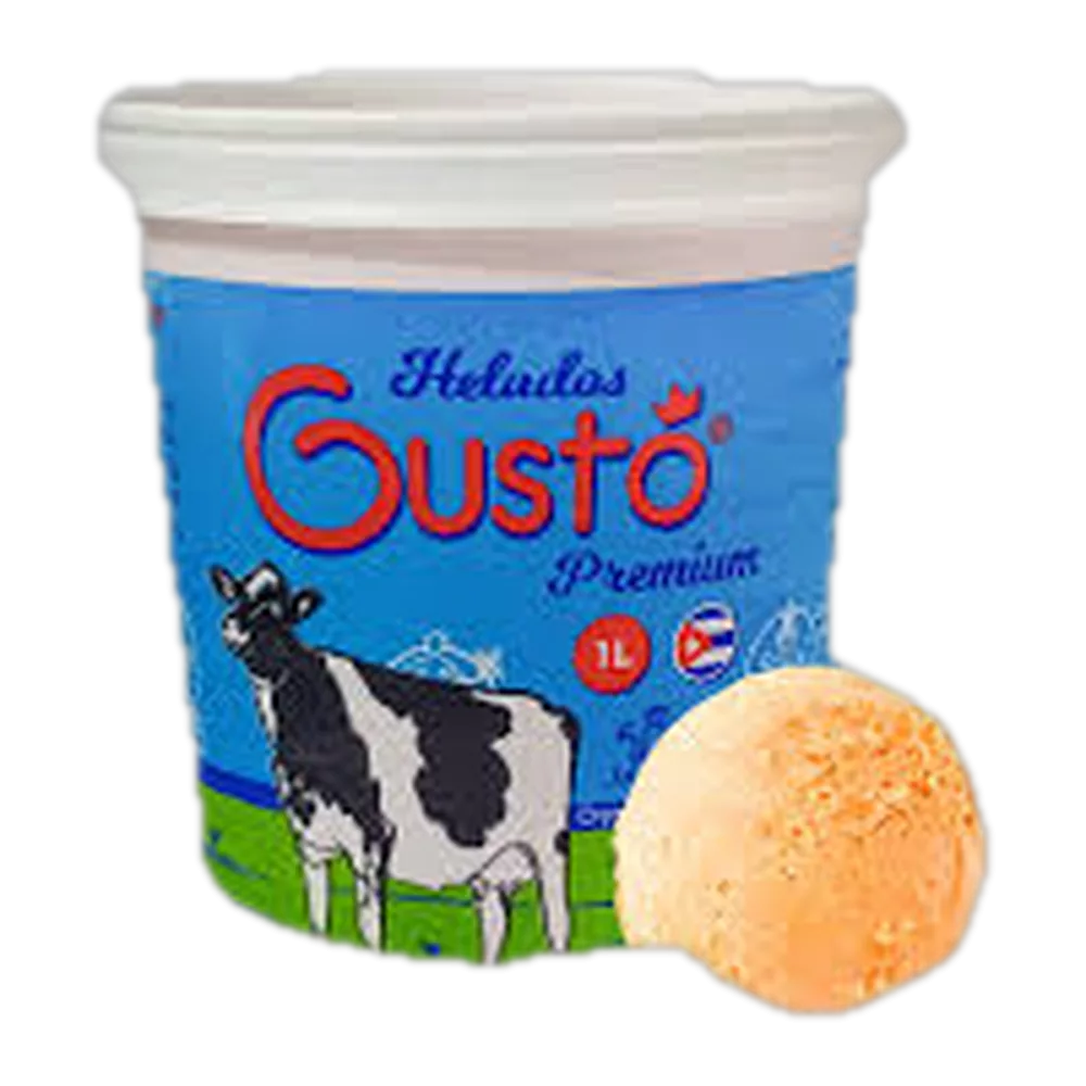 Envase de 1 litro de helado de naranja piña de la marca Gusto. Conservar a -18°C. Operador: Gusto.