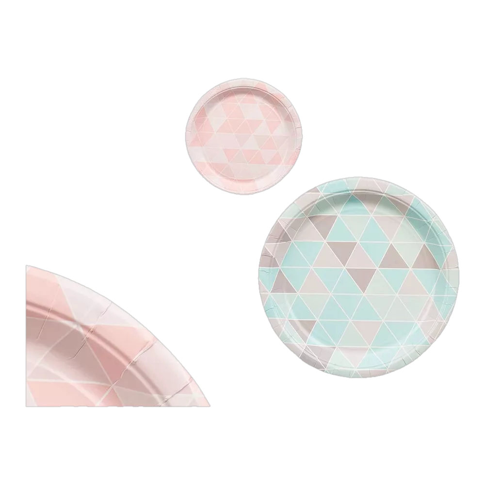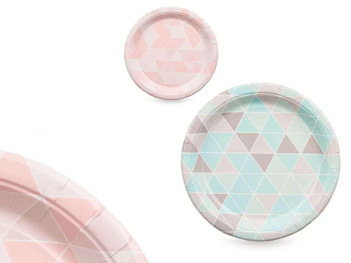 Set de 6 platos de papel con diseño de rombos, 22 cm, de la marca Ar. (Duplicado). Operador: Ar.