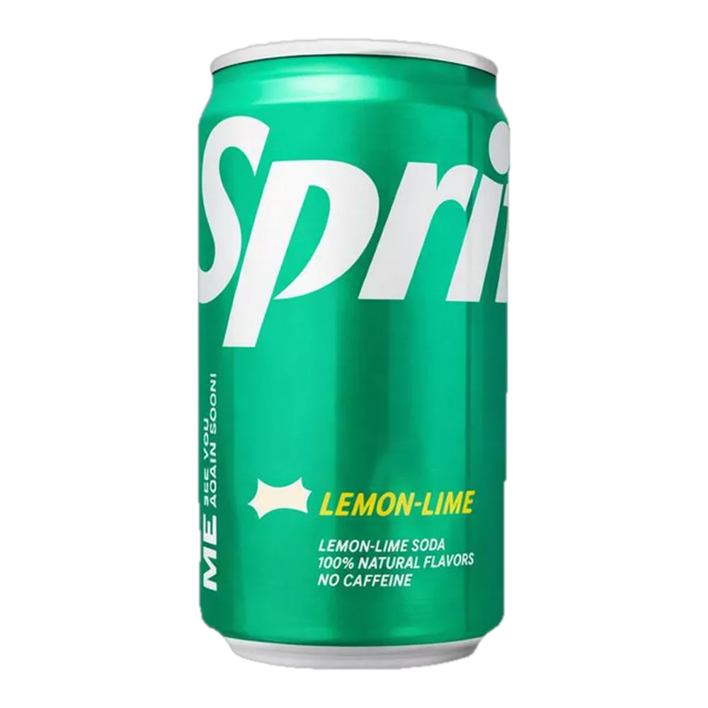 Lata de 7.5 oz (222 ml) de refresco Sprite. Formato pequeño. Operador: Sprite.