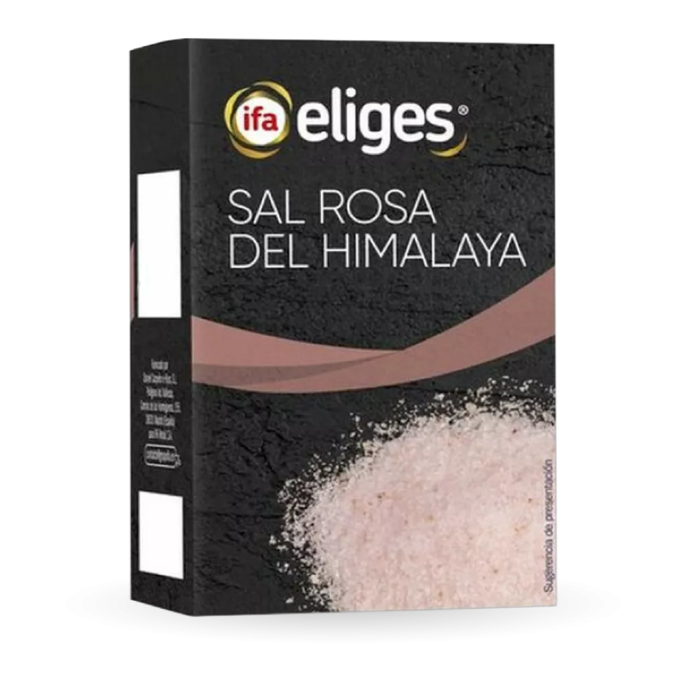 Sal rosa del Himalaya, de la marca Ifa Eliges. Presentación en cartón de 250 gramos.